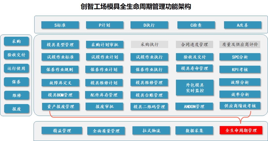 針對(duì)問(wèn)題和需求,創(chuàng)智工場(chǎng)模具全生命周期管理系統(tǒng)提供了落地解決方案: